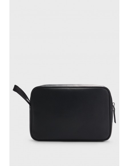 Faux leather wash bag with monogram print on front pocket by Boss