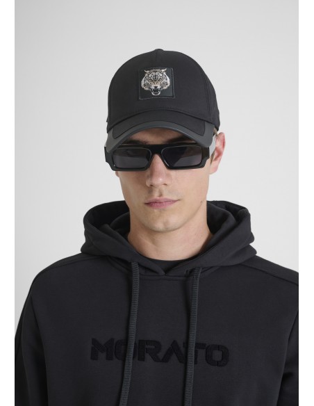 This Antony Morato baseball cap is a must-have accessory. Made from comfortable, solid-color stretch cotton, it features a striking tiger patch on the front panel. The adjustable buckle closure, also embossed with the logo, ensures a perfect fit. This baseball cap will add a sporty and dynamic touch to your everyday looks.