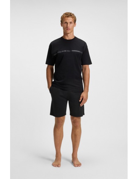 Update your loungewear collection with these BOSS Men's shorts in soft cotton terry cloth. Logo and stripe print on the left leg. Adjustable drawstring waist.