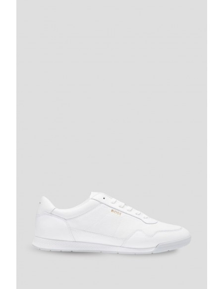 BOSS Men's sneakers in grained coated synthetic fabric with plain trims. Pair them with formal or casual outfits every day of the week. Coated synthetic fabric, sometimes called faux leather, is a fabric designed to resemble genuine leather or display a matte, shiny, smooth, or textured finish.