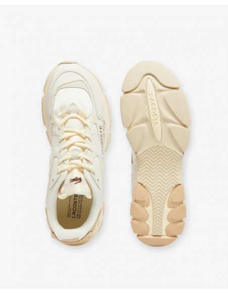 The L003 Neo is known for its bold and sleek look. With its luxurious textured and contrasting upper, it stands out with dynamic lines inspired by the movement of a tennis ball. Blending fashion and sporty style with unique touches, such as the heel strap.