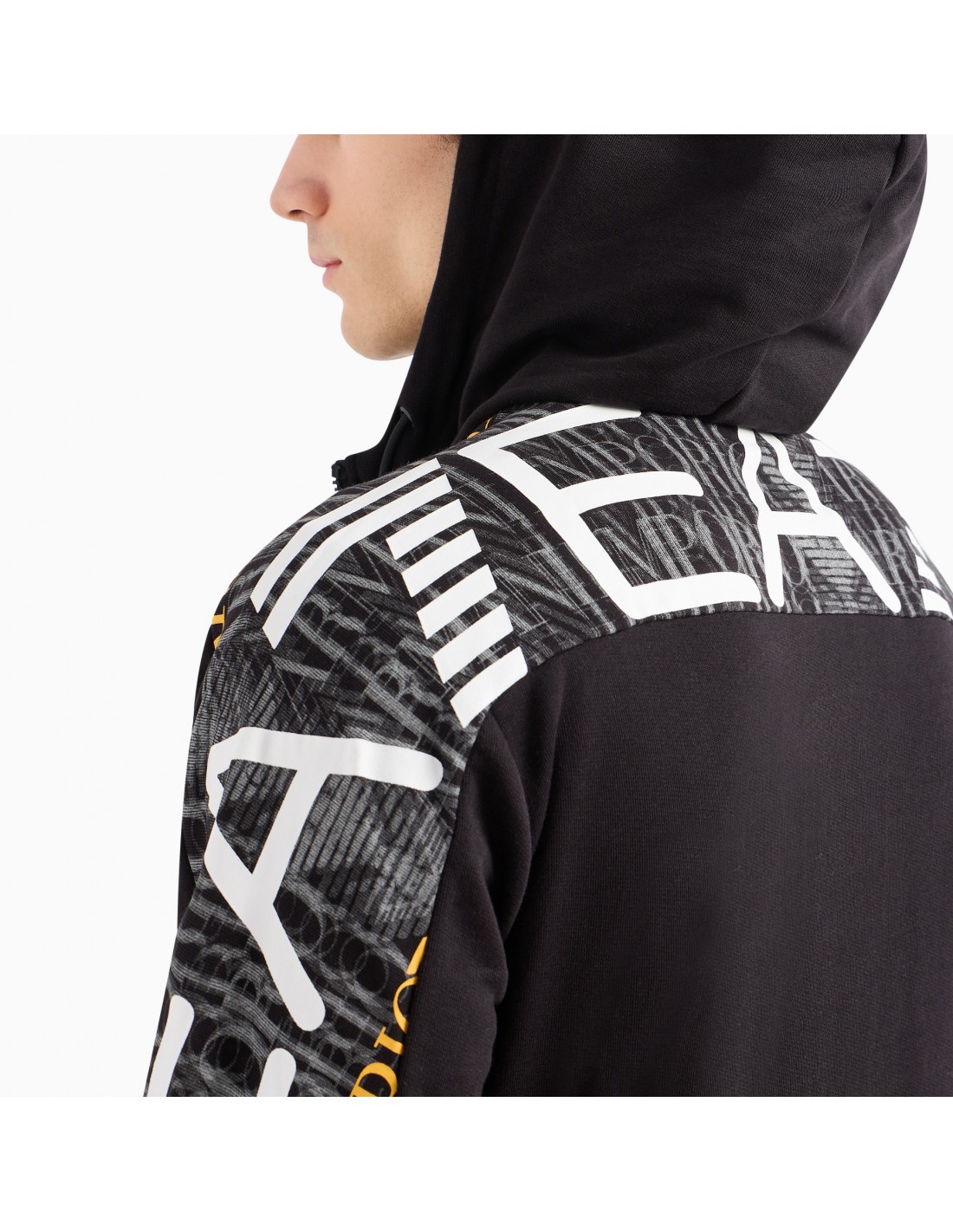Regular fit hooded sweatshirt made of cotton. The model stands out for the contrast printed lettering on the back, which underlines the daring spirit of the garment. The EA7 logo printed in contrast on the chest personalizes the garment.