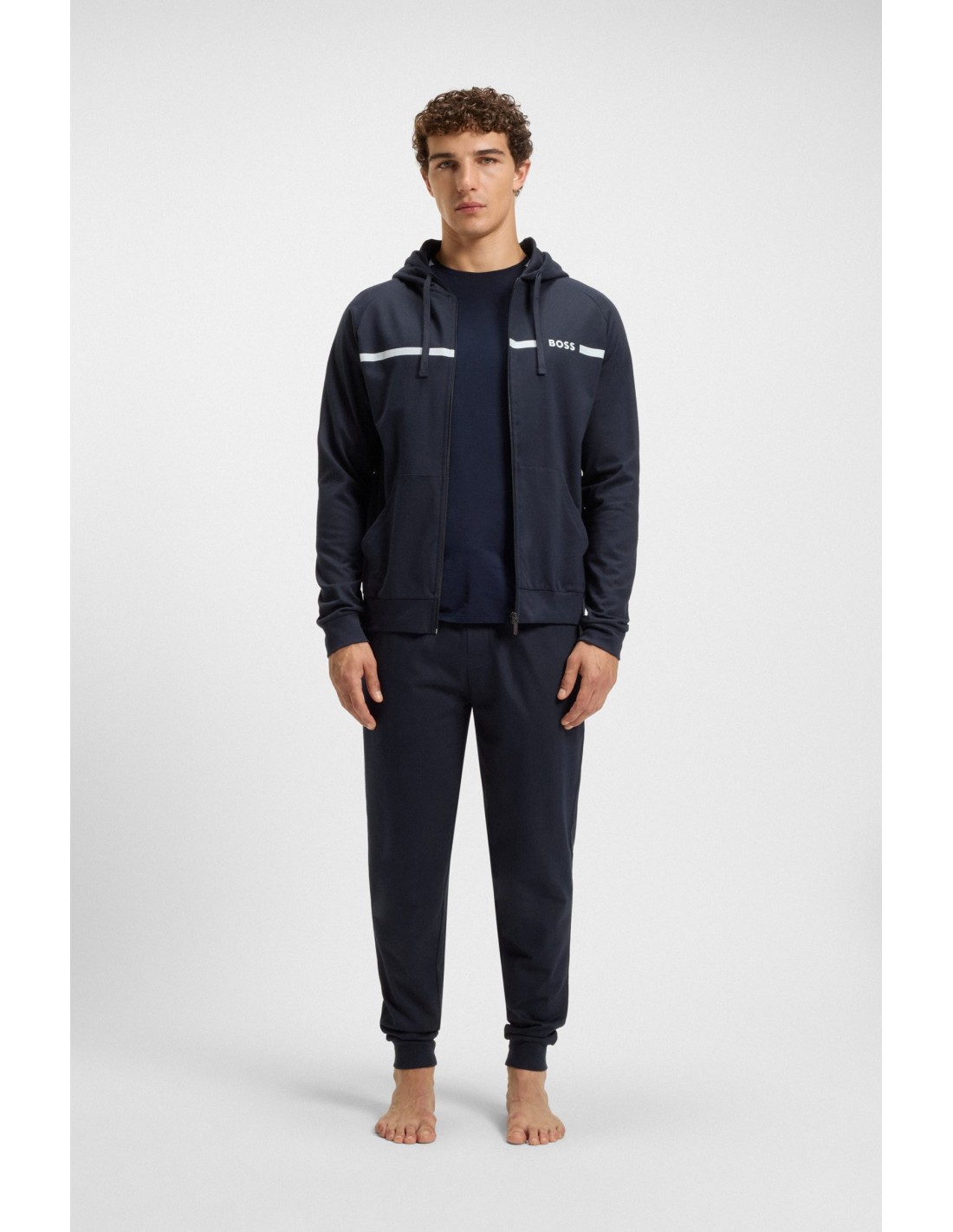 Men Sweatshirts Cotton fleece sweatshirt with signature stripe and Boss logo BOSS HG-50550560 €79.99 BLACK 001 DARK BLUE 404 Made from cotton French terry for leisure comfort, this BOSS Men's sweatshirt features a signature stripe and a centered logo. Regular fit. Add to cart S M L XL 2XL
