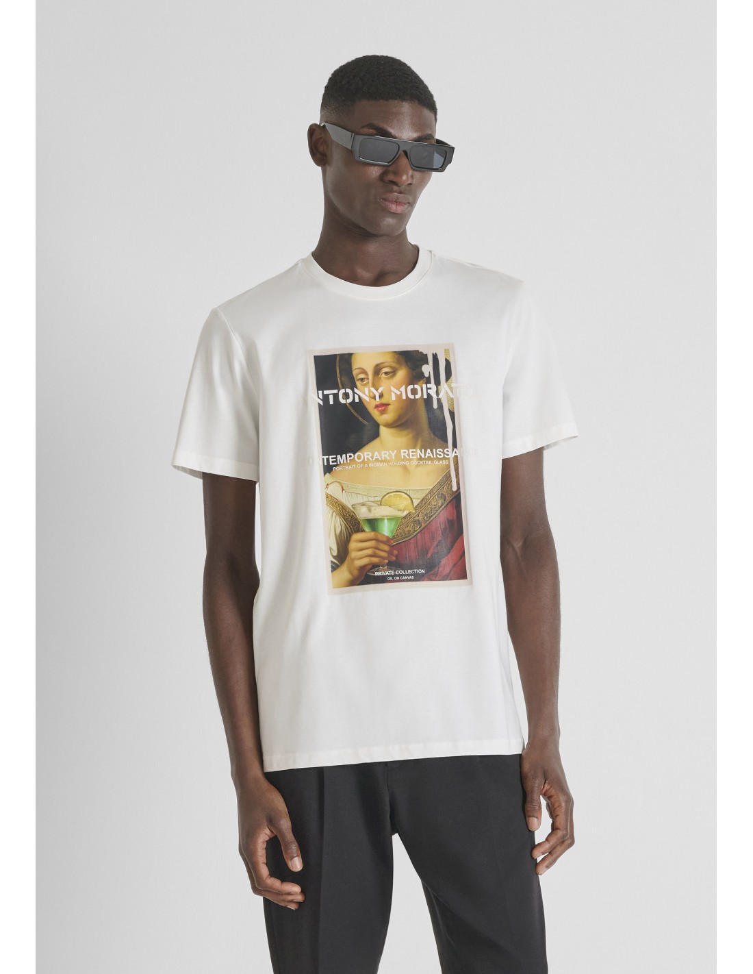 Relaxed fit crew neck T-shirt made from soft cotton jersey. This design perfectly combines classic and urban art in a unique combination. The photographic print on the back revisits a Renaissance theme, incorporating contrasting modern elements for an irreverent result. A garment ready to make a statement, a true must-have for your Antony Morato T-shirt collection.
