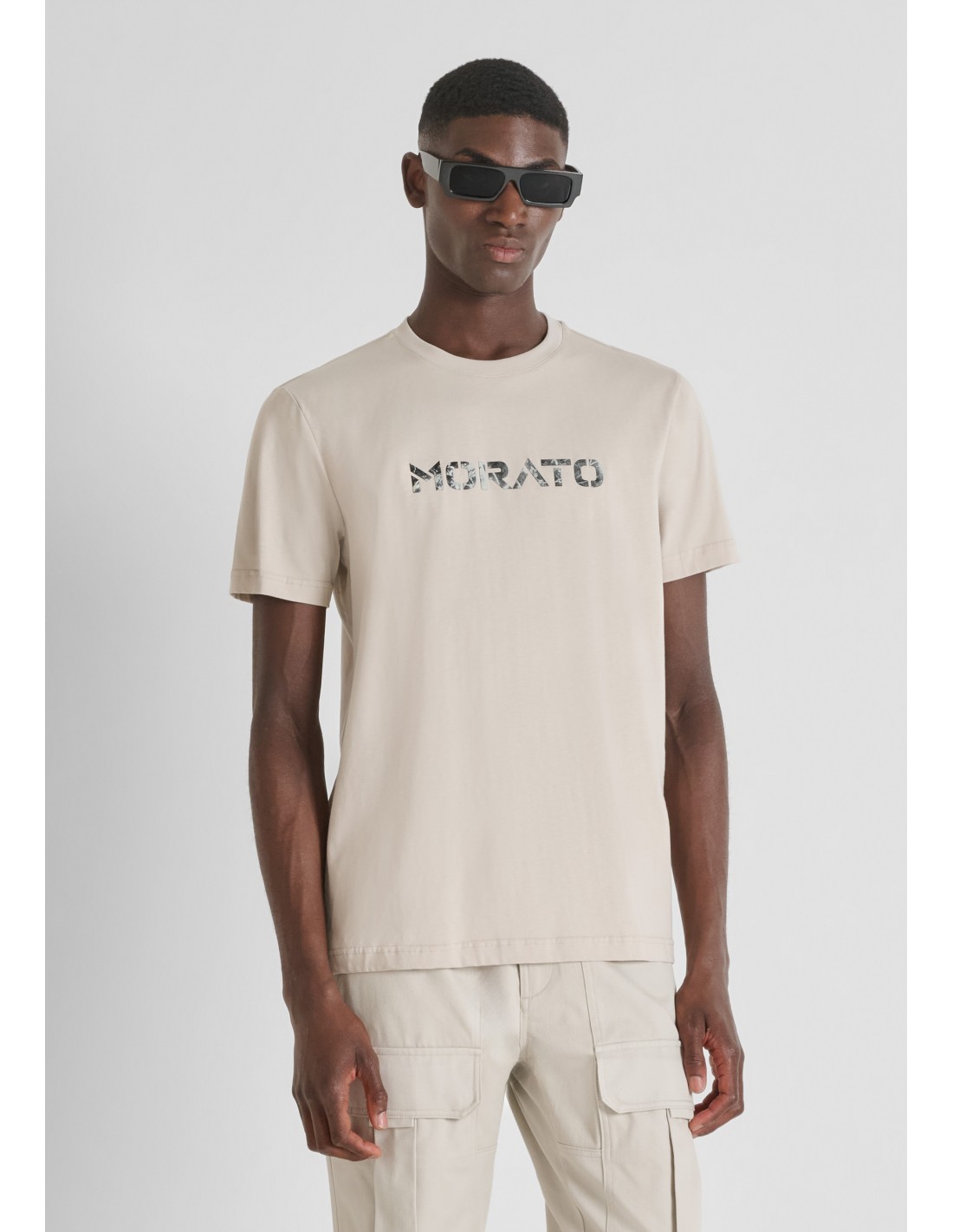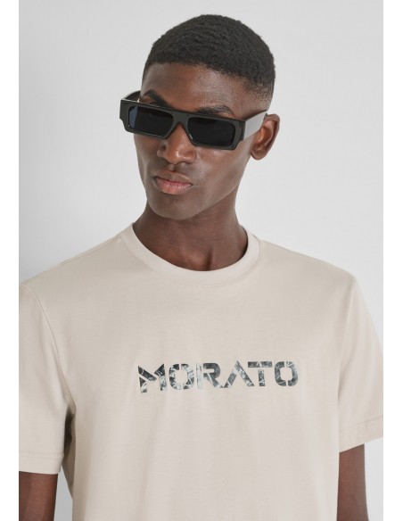 Regular fit cotton jersey T-shirt with painted logo print by Antony Morato