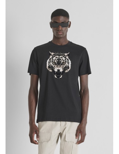 Regular fit T-shirt in cotton jersey with flocked tiger print by Antony Morato