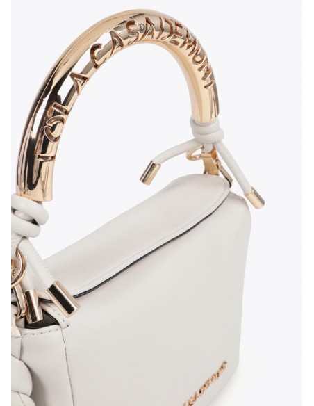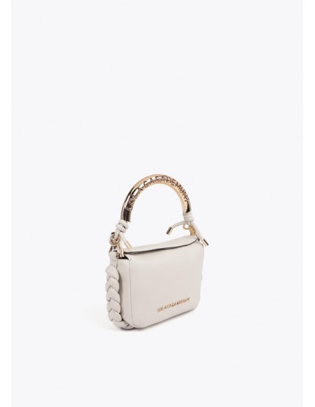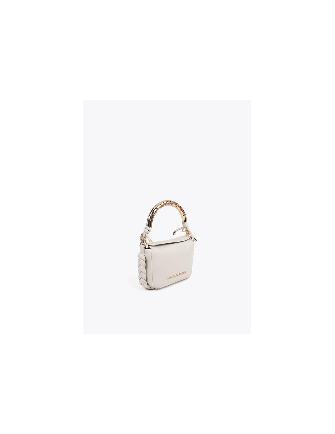 Elegant mini crossbody bag with a custom metallic handle. Made from high-quality material for durability. Spacious interior with a secure magnetic closure. Versatile design with braided details on the sides and an embossed logo. Ideal for adding a touch of sophisticated style to your everyday looks.