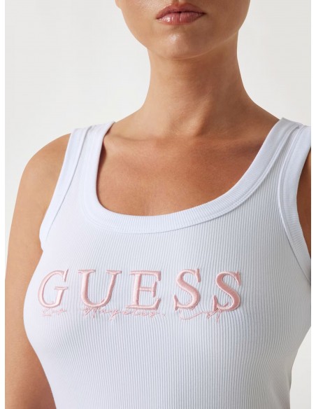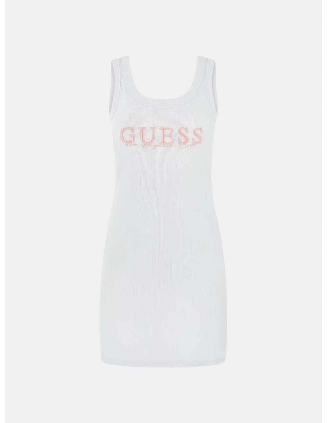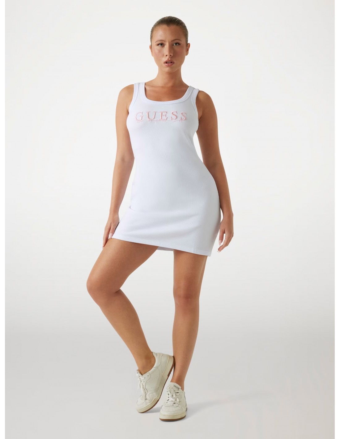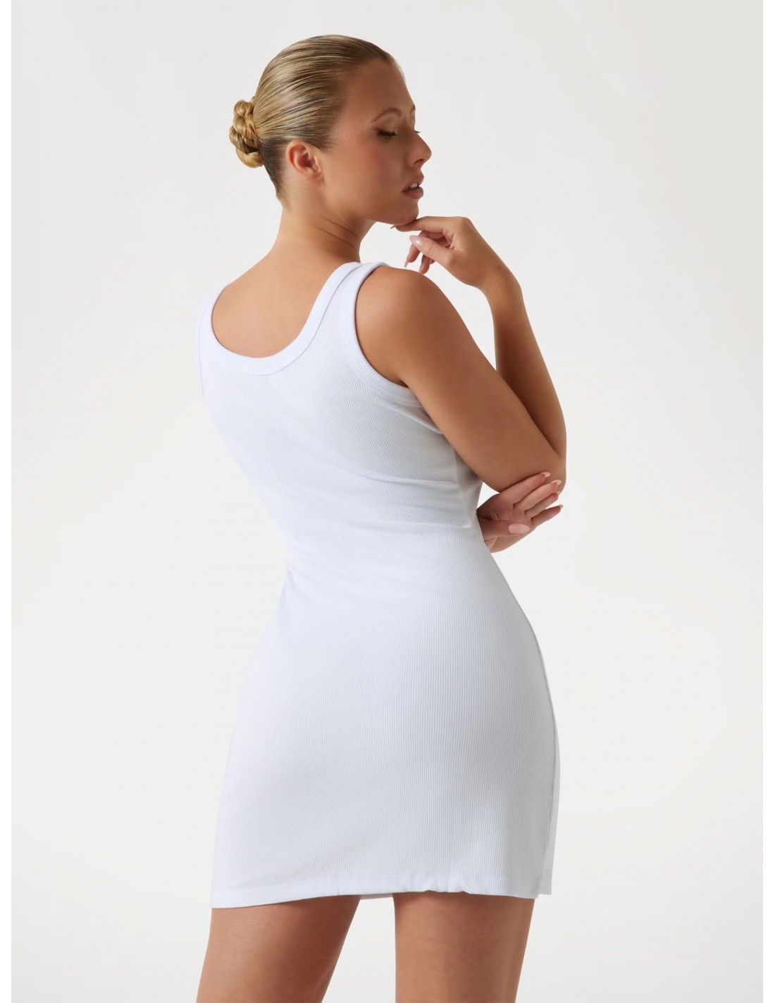 Show off in style with this knit mini dress. Ribbed stretch viscose creates a bodycon fit that flatters your silhouette, complemented by a flattering round neckline. The large embroidered logo adds a modern touch. Perfect for an elegant brunch or a night out.