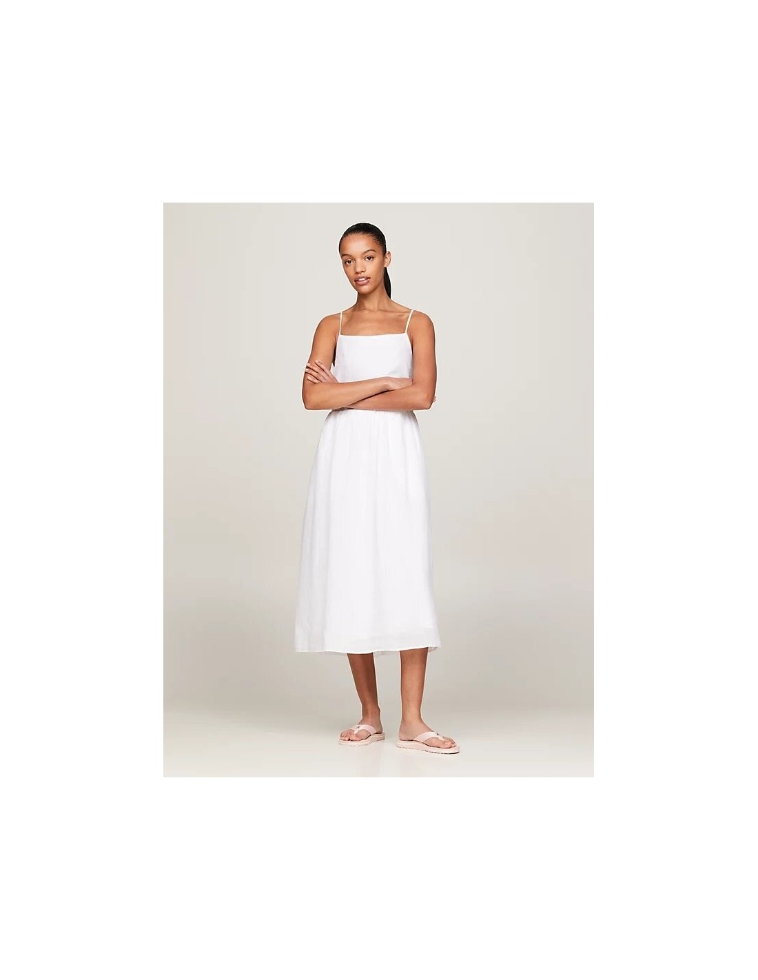 Curved T-shirt with distinctive tape and Tommy Hilfiger logo