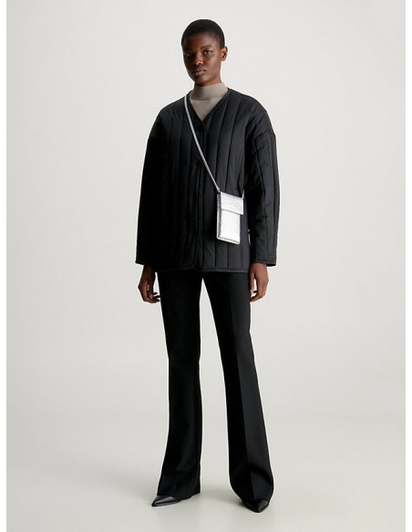 The exterior of the mobile phone bag is made from 51% recycled polyester, created by reprocessing existing materials.