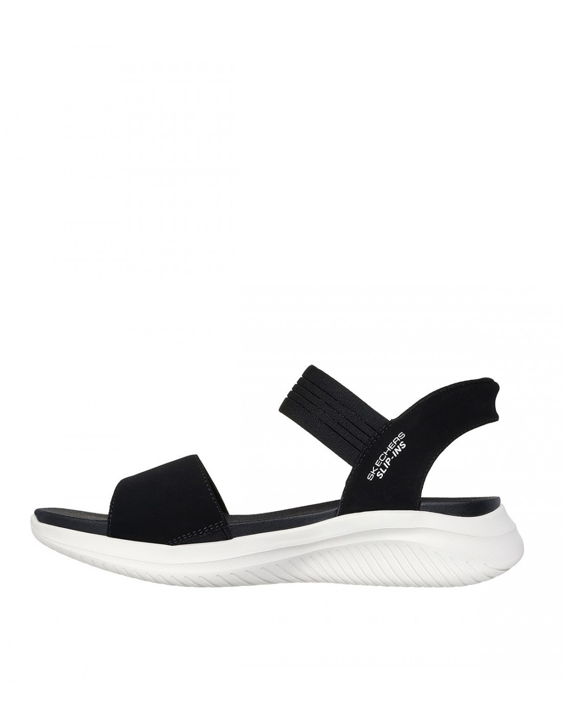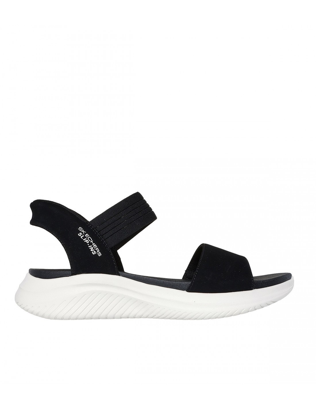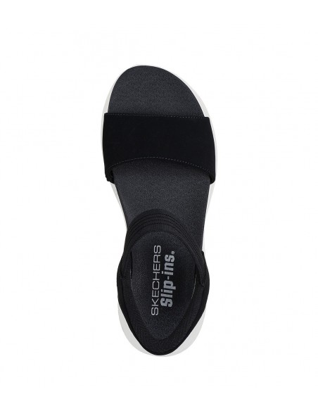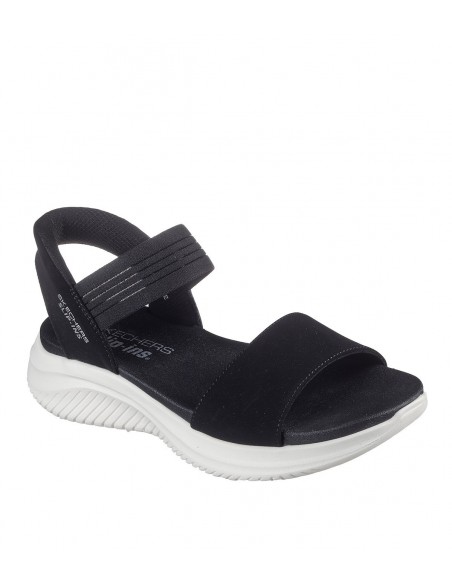 Enjoy sunny days with the comfort and coolness of the Skechers Hands-Free Slip-ins®: Ultra Flex 3.0 - Summerville. This open-toe sandal, designed with Skechers' Heel Pillow™ System, features a stretchy textile upper with a cushioned Yoga Foam® insole. Our Planet Matters™: Good for your feet. Good for the world.