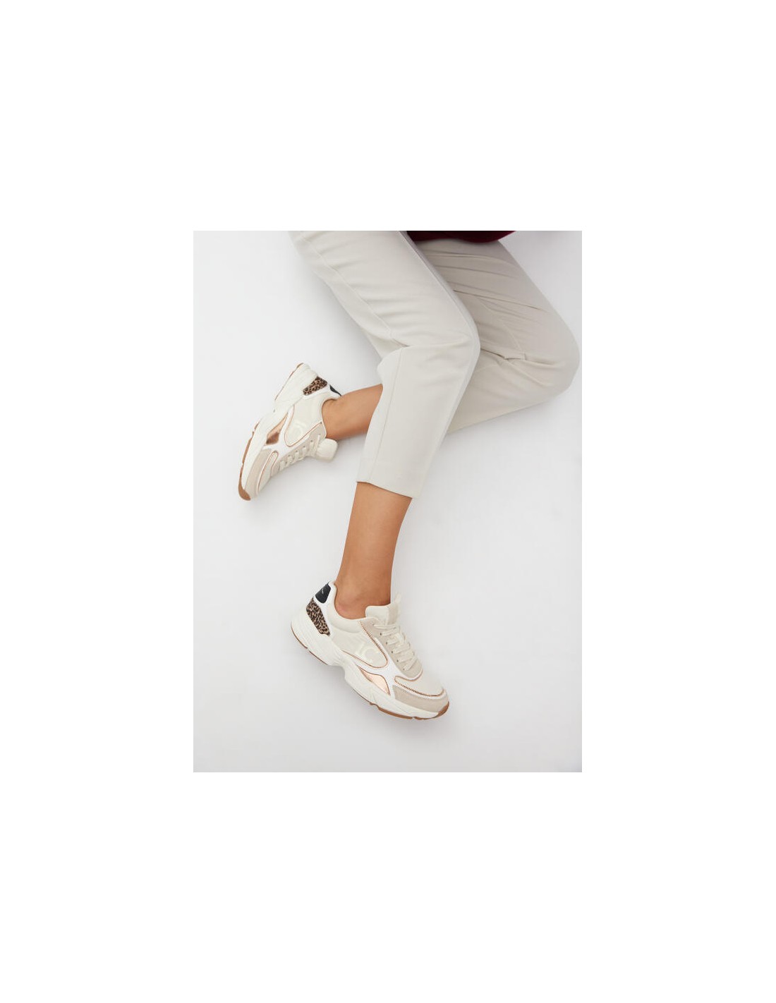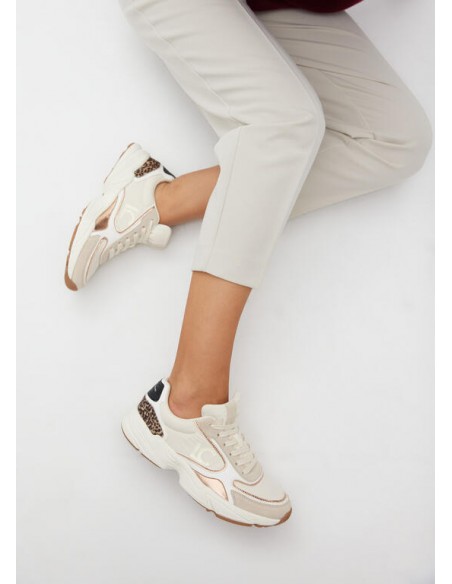 Women's running shoes with a running sole. Modern design with animal print details and a metallic finish. Comfortable and lightweight, ideal for everyday wear. Lace-up closure and cushioned insole for added comfort.