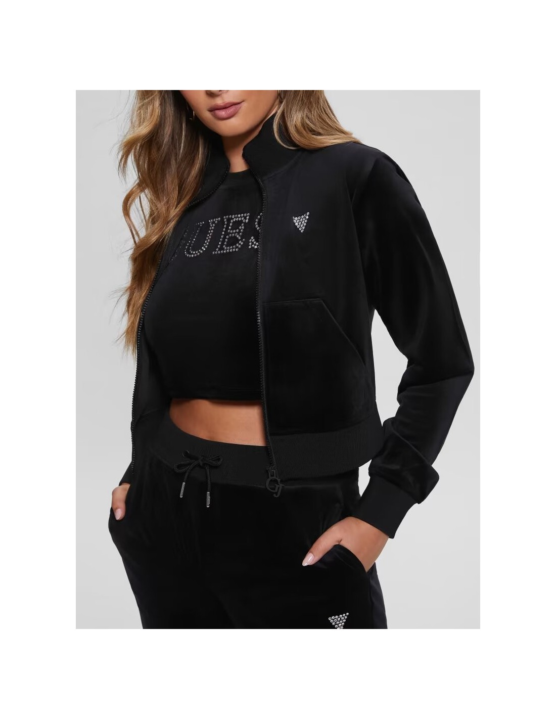 DECORATIONS: Small logo triangle with rhinestones.