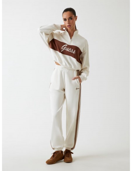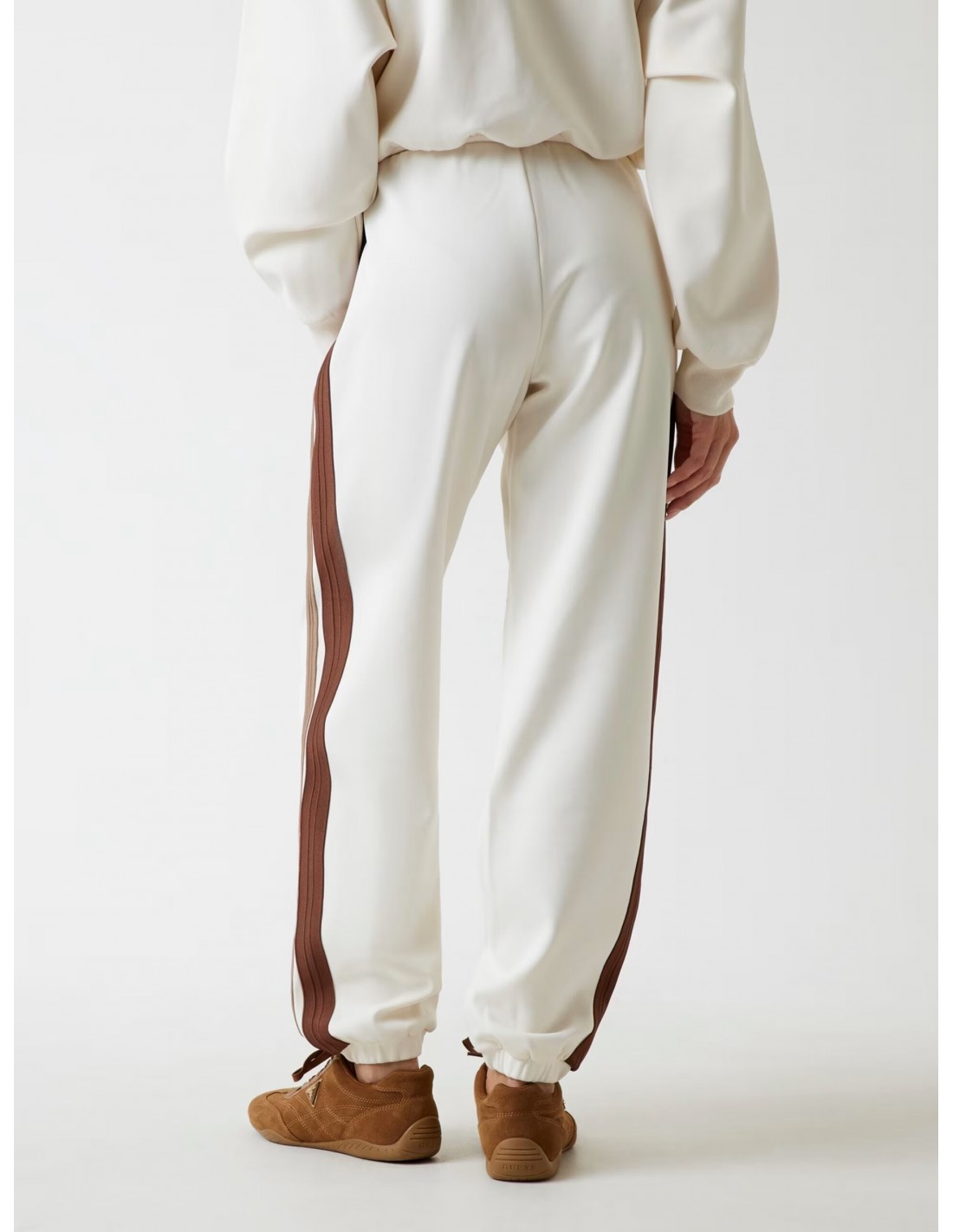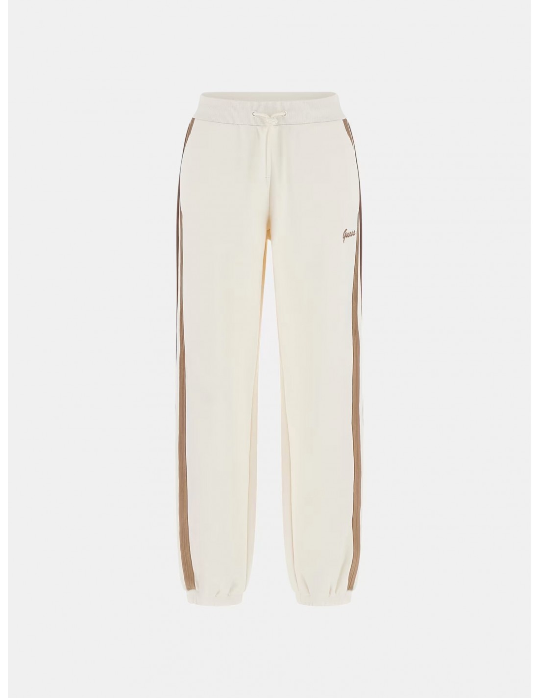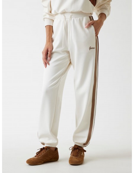 Dare to embrace chic comfort with these stretch viscose blend joggers from Guess. Contrast side stripes and a logo add a modern touch. Elastic cuffs and an adjustable waistband ensure absolute comfort. Eco-friendly product made with recycled components.