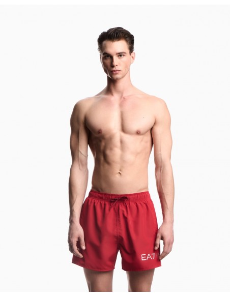 Bañador de largo medio propuesto en colores versátiles y fáciles de combinar. El modelo presenta cordón en la cintura y dos bolsillos laterales y está personalizado con logotipo EA7 en contraste en la pernera izquierda. Ideal para la playa y la piscina.