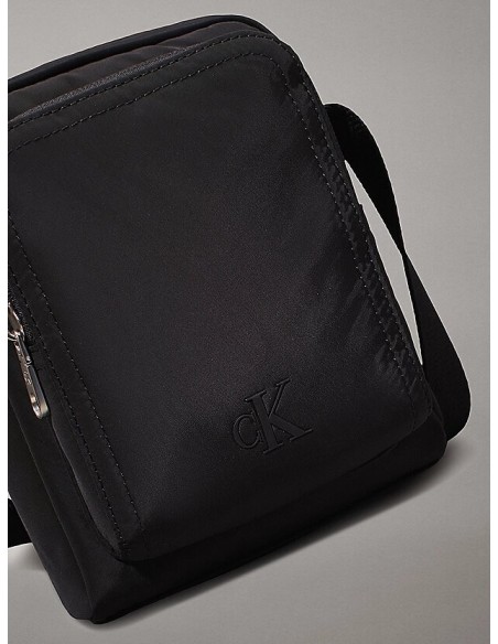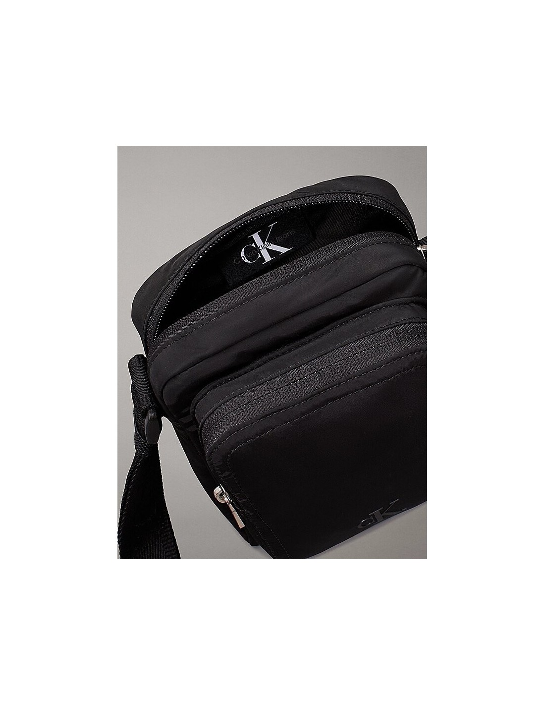 El exterior del bolso reporter está elaborado con un 100 % de poliéster reciclado, sin incluir los adornos. El poliéster reciclado incluido en este producto fue creado a partir del reprocesamiento de materiales ya existentes.