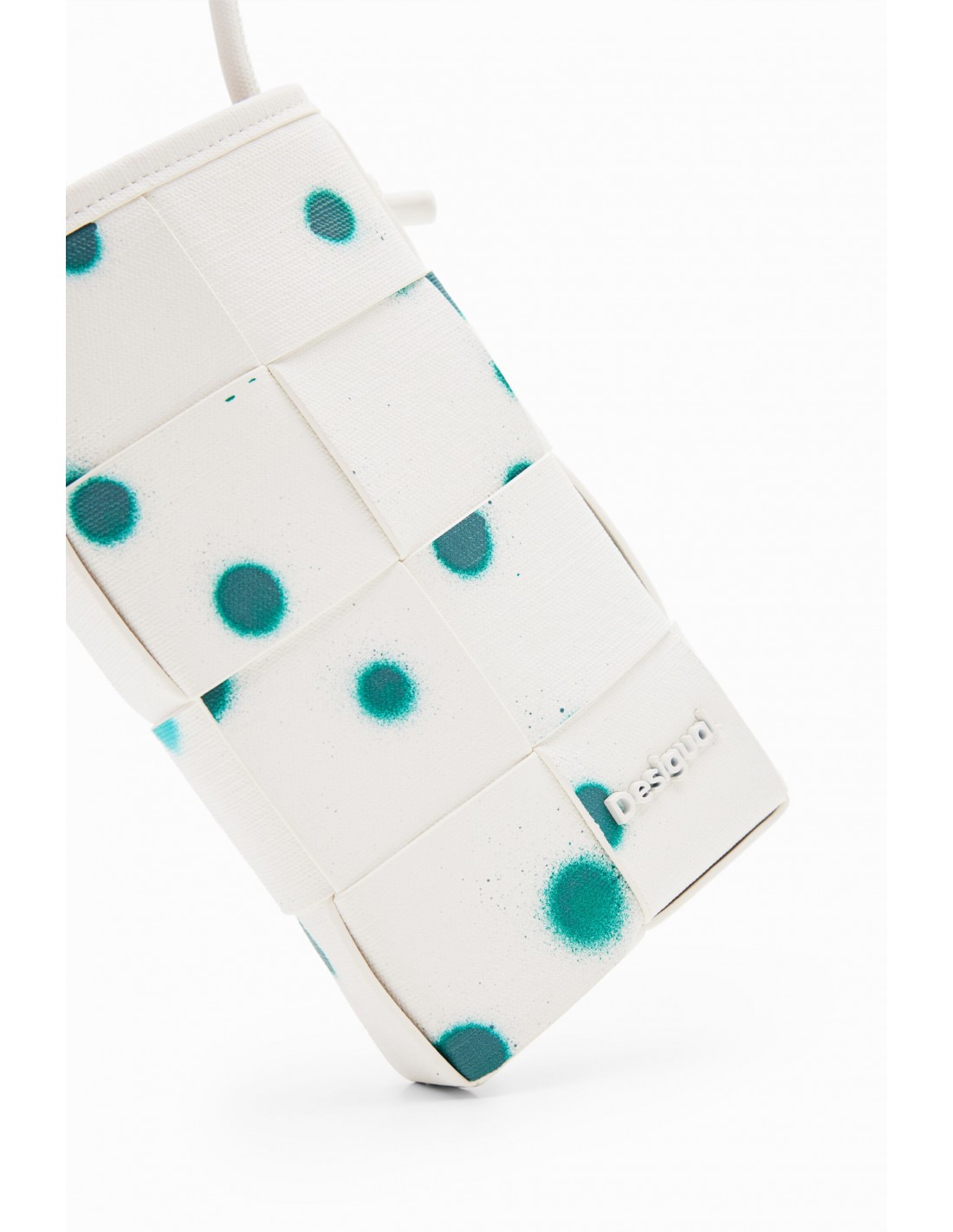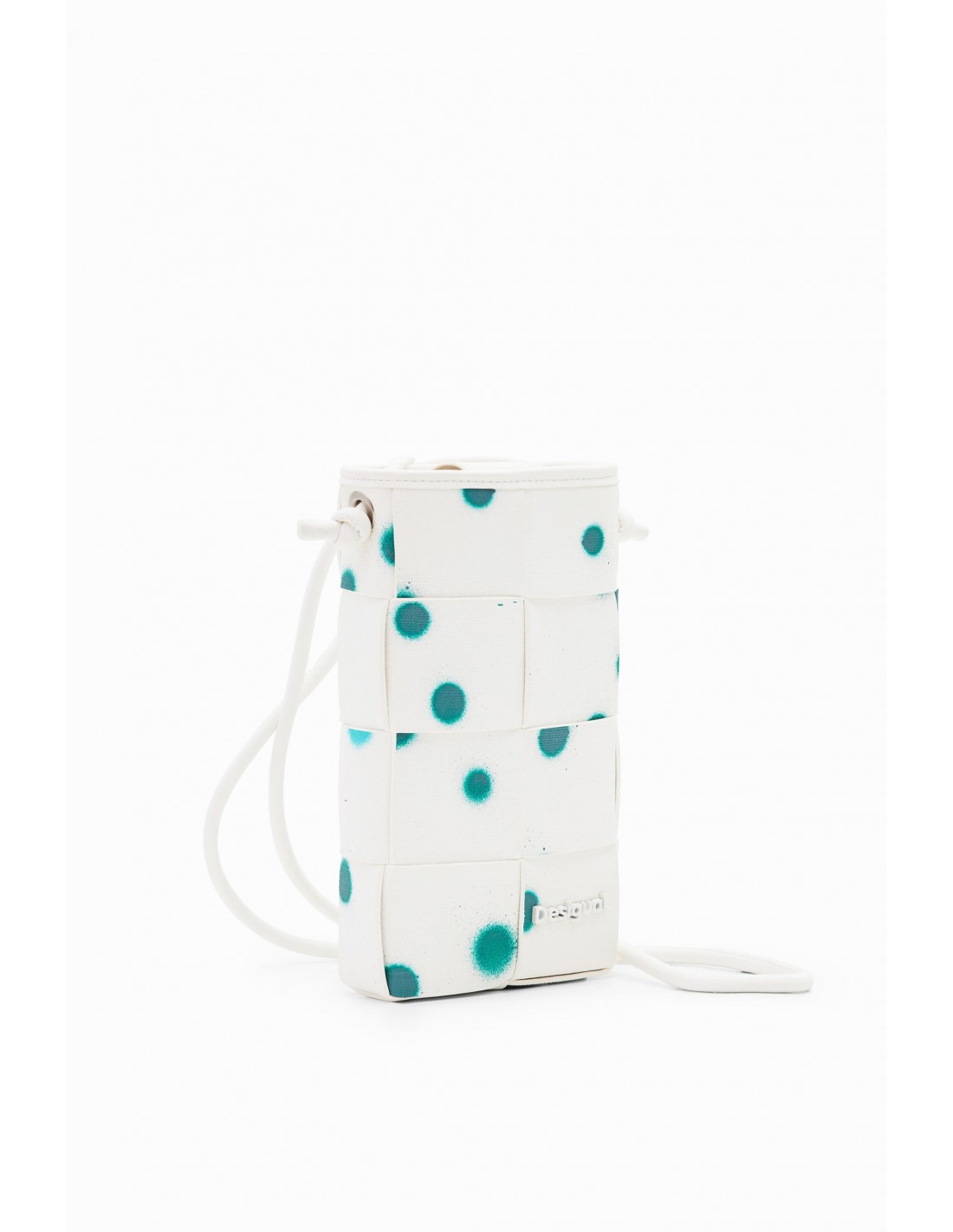Porta móvil grande trenzado en tejido efecto piel con textura, estampado de gotas y cordón.