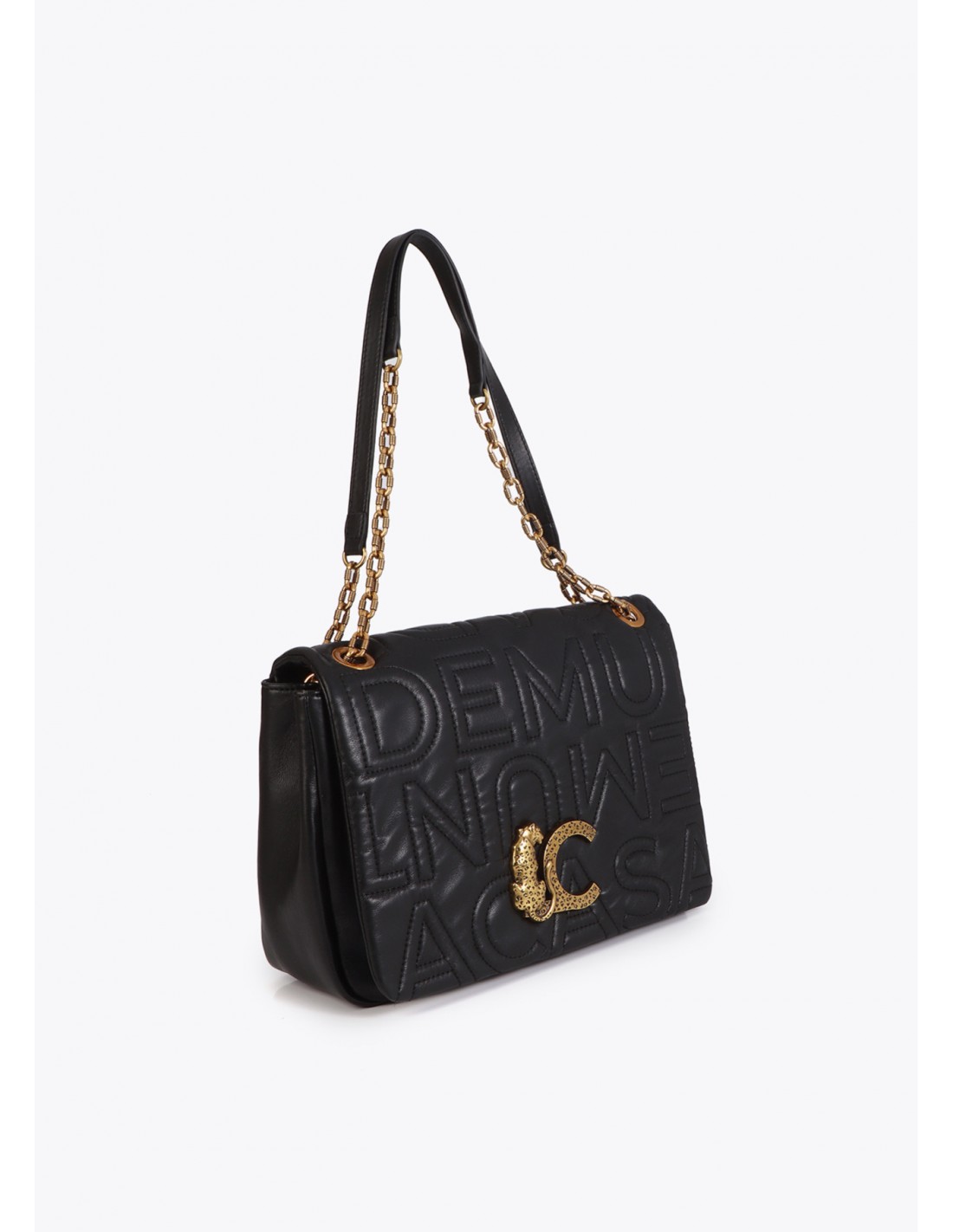 Bandolera elegante con logo pespunteado en la solapa. Fabricada en material de alta calidad, presenta un diseño espacioso y cadenas doradas para mayor sofisticación. Ideal para complementar tus looks diarios.