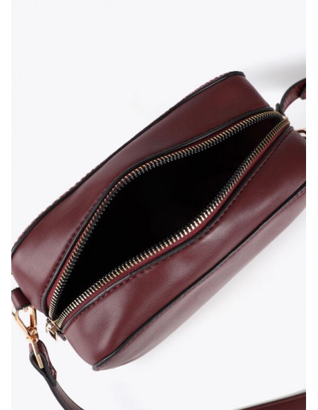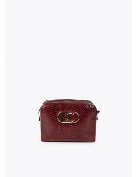 Bandolera en efecto piel de serpiente, logo ovalado en el frente y correa ajustable con detalles de marca. Ideal para añadir un toque de elegancia en tu día a día.