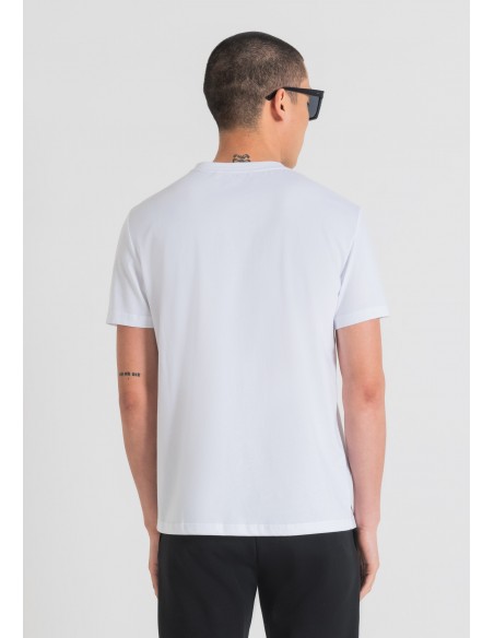 Camiseta super slim fit de algodón elástico con logotipo estampado de goma de Antony...