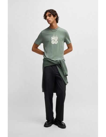 Una camiseta HUGO Hombre de nueva temporada estampada con un logo apilado de efecto ahumado. Este diseño regular fit se presenta en punto suave y transpirable.