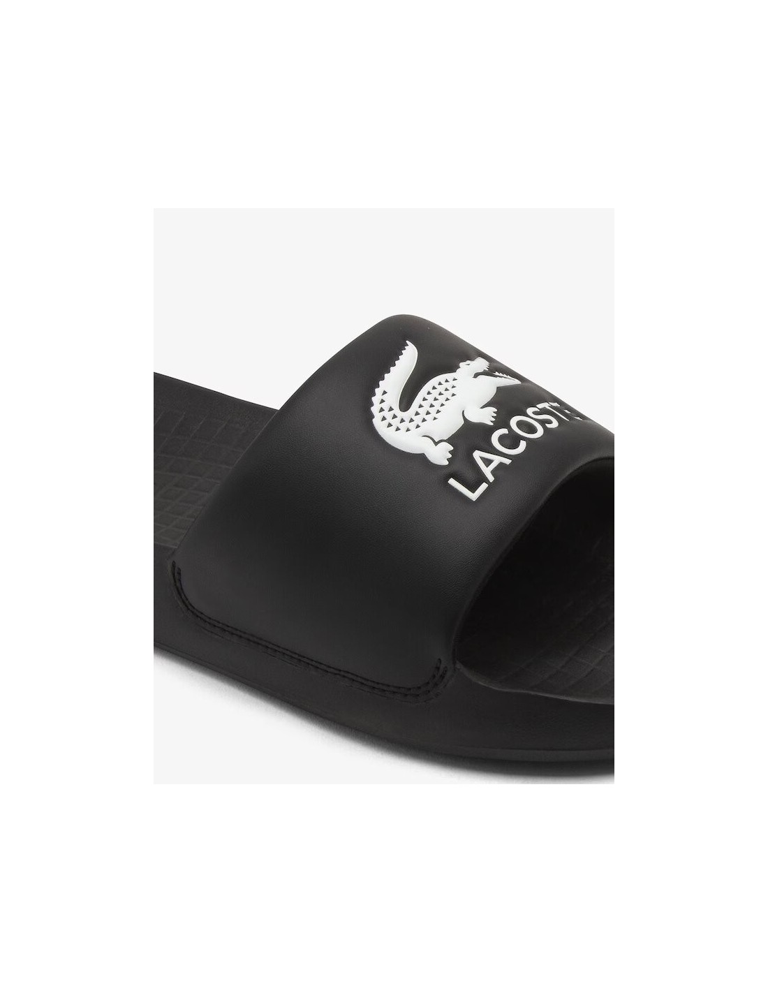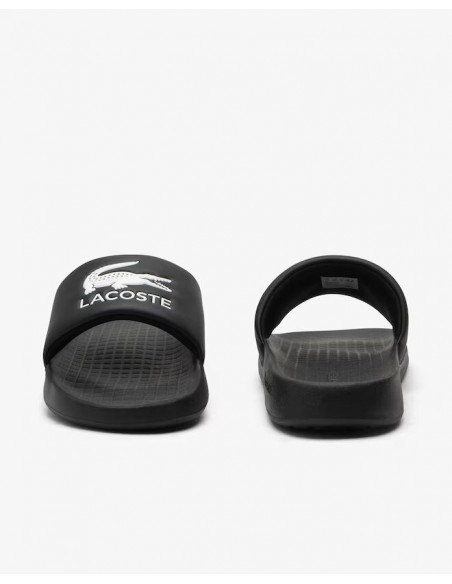 La Serve Slide 1.0 es un básico de la colección de calzado Lacoste. Fusión de estilo y confort, con construcción de EVA y una pala acolchada adornada con un sello de cocodrilo oversized en contraste. Un básico del verano, con sutiles detalles de la marca en la suela.