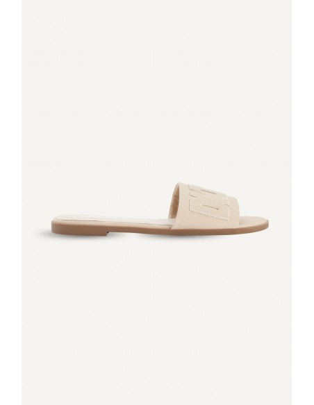 Presentamos tus nuevas sandalias favoritas de verano. DKNY diseñó este modelo de punta abierta con una parte superior de lona resistente y lo rematan con detalles de logotipo tonalizados para un estilo y una sensación típicamente neoyorquinos.