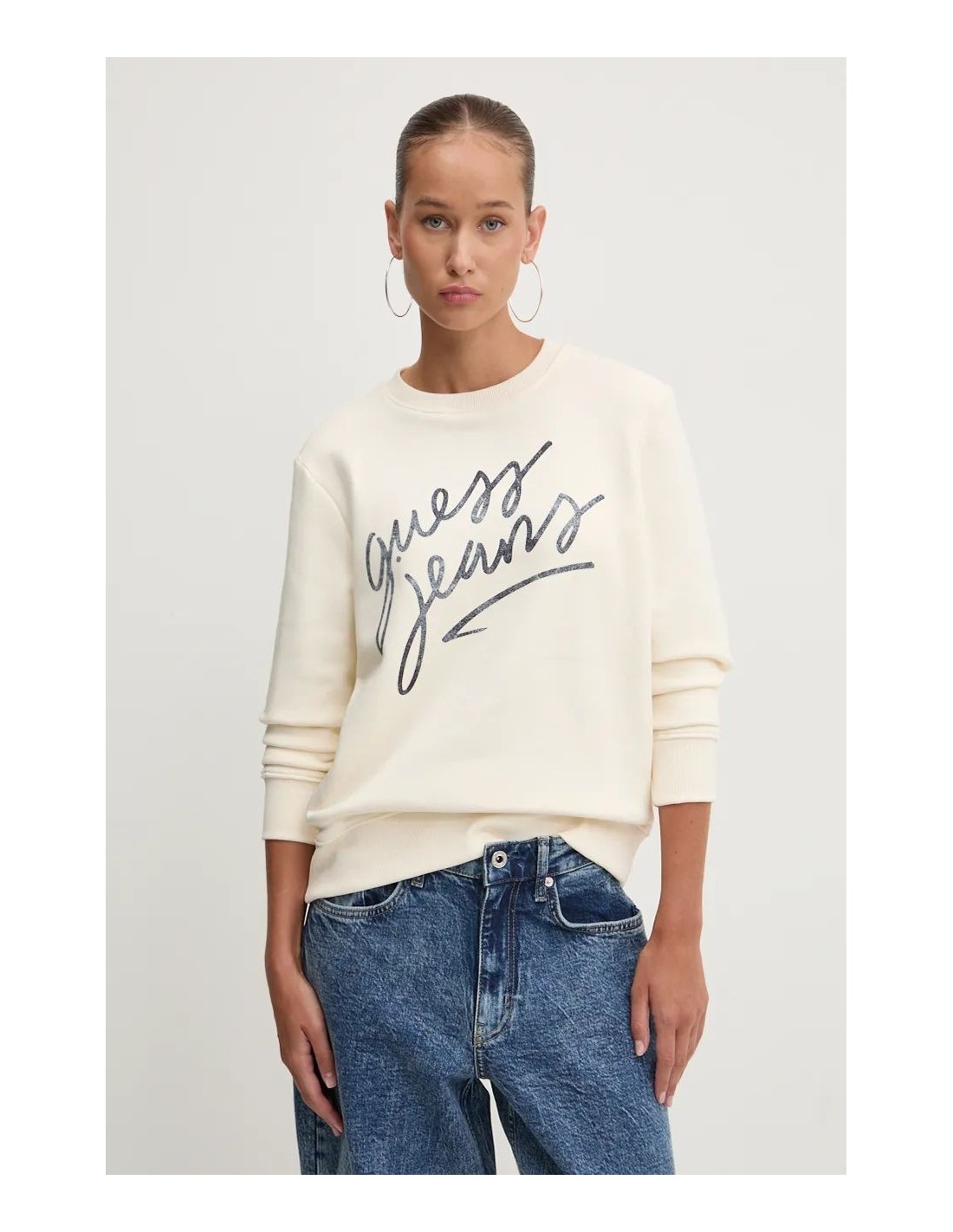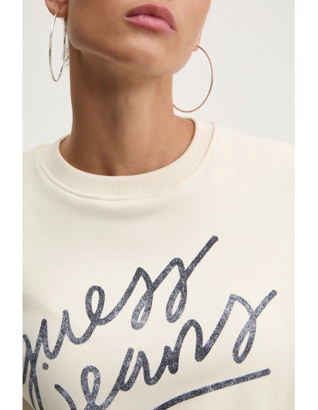 Esta sudadera clásica de Guess Jeans presenta una inscripción de logotipo en cursiva y detalles con material de excelente calidad. Confeccionadaen con una mezcla de algodón orgánico.