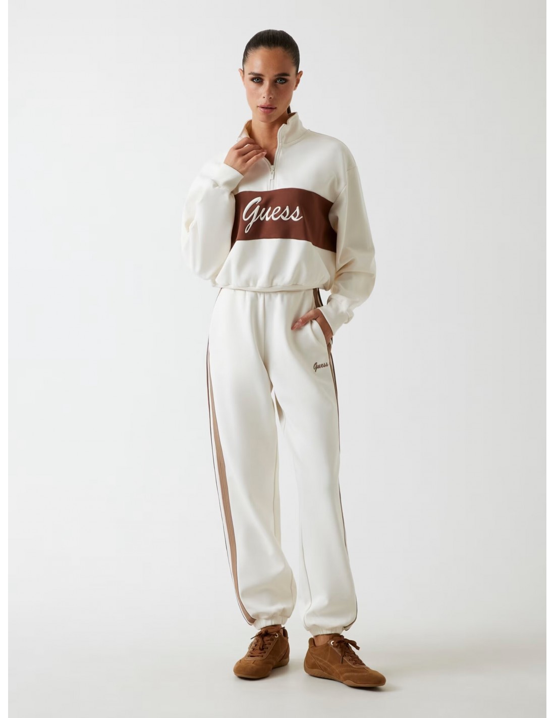 Descubre la comodidad y el estilo con esta sudadera moderna de Guess. La mezcla de viscosa elástica ofrece ajuste ideal. Su cuello perkins con media cremallera lo hace perfecto para un look casual. Logotipo bordado frontal añade un toque exclusivo. Este artículo está hecho con componentes reciclados.