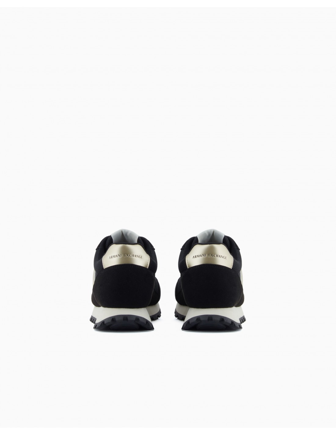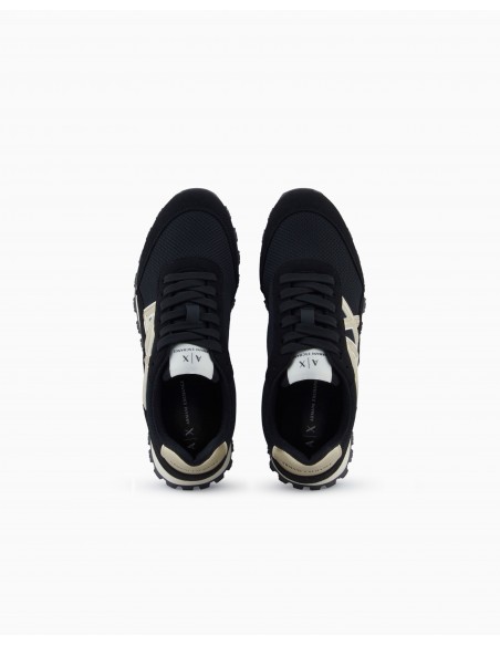 Zapatillas confeccionadas con una mezcla de materiales, diseñadas para quienes buscan una estética dinámica y una comodidad duradera. Su diseño se inspira en el mundo del entrenamiento, con una parte superior que combina tejido técnico transpirable e inserciones de ante suave, creando un sofisticado juego de texturas. El maxilogotipo AX en el lateral, aplicado en contraste, es el protagonista indiscutible, dándole un carácter audaz e inmediatamente reconocible, en línea con el espíritu joven y moderno de la marca. La suela estructurada garantiza agarre y sujeción.