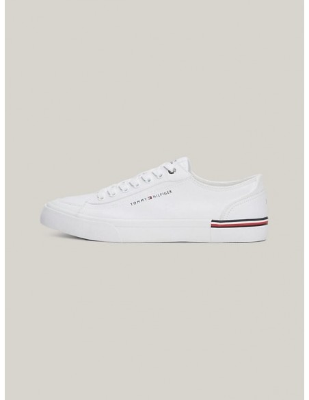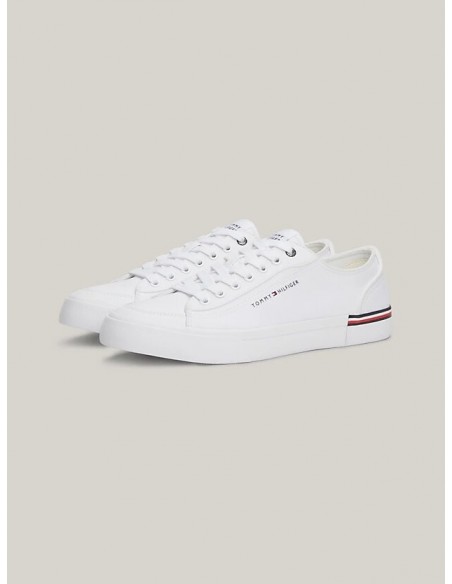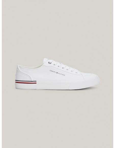 Estas zapatillas con corte bajo y discretos detalles distintivos de Tommy Hilfiger están confeccionadas en lona de puro algodón con una transpirabilidad natural.