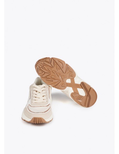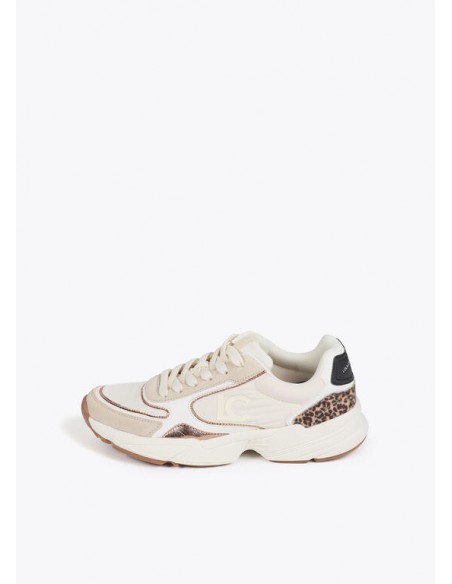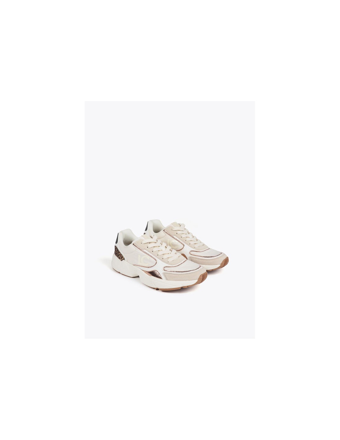 Zapatillas deportivas para mujer con suela running. Diseño moderno con detalles de animal print y acabado metalizado. Cómodas y ligeras, ideales para uso diario. Cierre con cordones y plantilla acolchada para mayor confort.
