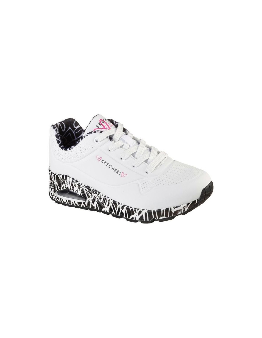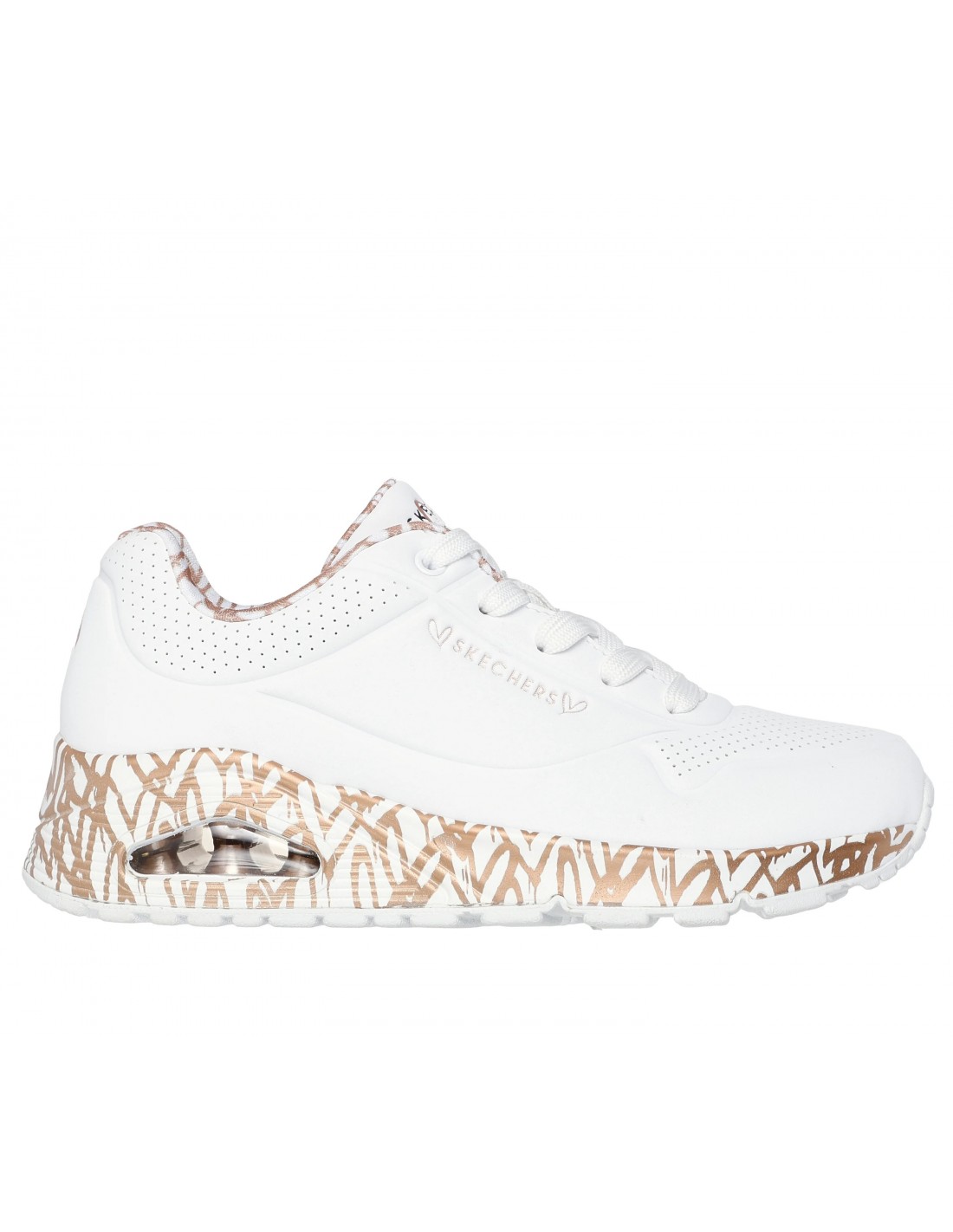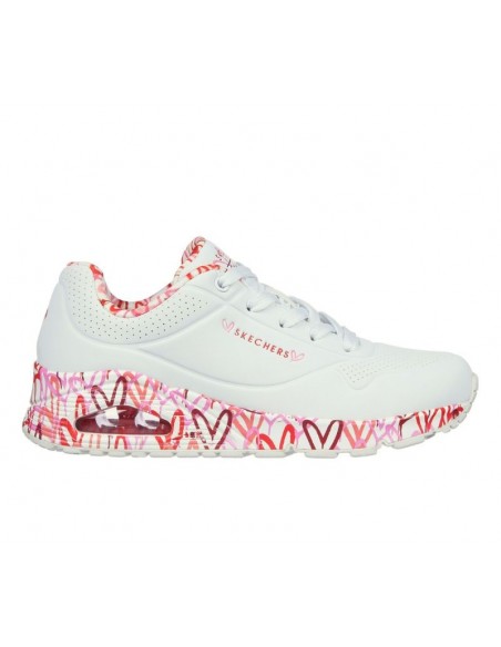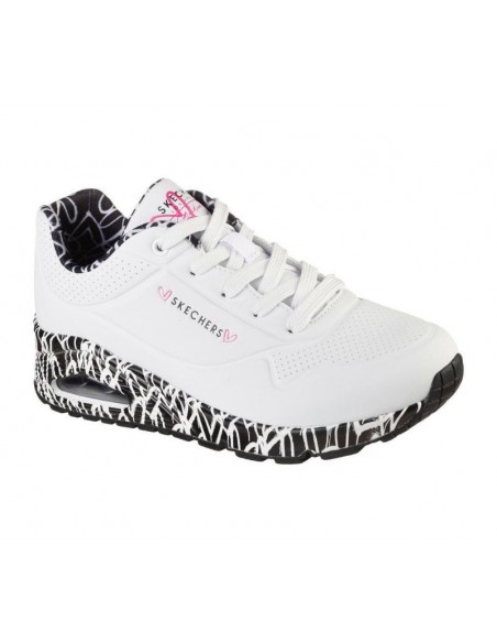 El muralista famoso en todo el mundo James Goldcrown lleva a Skechers sus icónicos diseños de corazón #Lovewall en esta inspiradora colaboración. Camina con “Love” allá donde vayas con la Skechers x JGoldcrown: Skechers Street™ Uno - Loving Love. Estas modernas zapatillas con cordones cuentan con el estampado de corazón característico del artista en el ribete, parte superior de durabuck sintético con ribete perforado, plantilla Skechers Air Cooled Memory Foam® y cuña de plataforma con media suela visible Skech-Air® con cámara de aire.